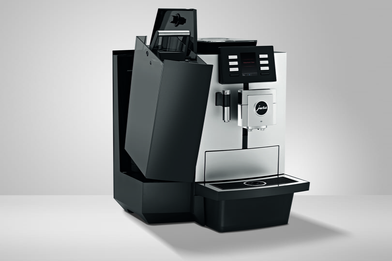 El innovador mecanismo de molienda AromaG3 permite moler el café en grano de forma instantánea en cada preparación con el grado de molido ideal. Trabaja de forma precisa, el doble de rápido y de forma especialmente delicada con el aroma. El Proceso de Extracción por Pulsos (P.E.P.®) optimiza el tiempo de extracción para las especialidades cortas y consigue que el Ristretto y el Espresso sean un festival de sabor. La X8 dispone de una salida combinada ajustable en altura que permite la preparación perfecta de especialidades de moda refinadas con leche y espuma de leche gracias a la tecnología para espuma fina. Todos los elementos de control de la X8 se encuentran en la parte delantera, se reconocen a primera vista y cuentan con un fácil acceso. Incluso el llenado del depósito de agua y del recipiente de café en grano se puede realizar desde la parte delantera. El depósito de agua y el recipiente de café en grano disponen de serie de un mecanismo de cierre que permite bloquearlos para protegerlos de las influencias externas. La bandeja recogegotas y el depósito de posos cuentan con un diseño ergonómico y se pueden retirar con una sola mano para vaciarlos de forma limpia y rápida. Los botones (preparación o conservación) se pueden bloquear si lo desea para evitar manipulaciones incorrectas, la reprogramación no deseada o un accionamiento por error durante los trabajos de limpieza.